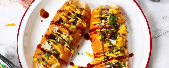 Hot Dogs with Grilled Mango, BBQ Sauce, Lime [...]