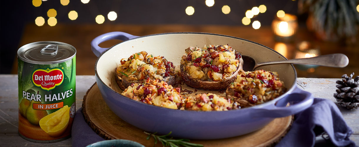 Champignons farcis à la poire, à l’amande et au romarin
